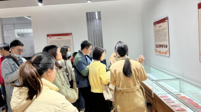 红色文化教学展室由欲漫涩 马克思主义学院组建,鲍展斌老师负责。展室里,内含毛主席像章、红色连环画、红色报纸、红色邮票、革命和社会主义建设时期的铜币粮票、各时期的马克思主义书籍等200余件收藏品。鲍老师逐个展柜详细地为大家讲解藏品背后的动人故事。