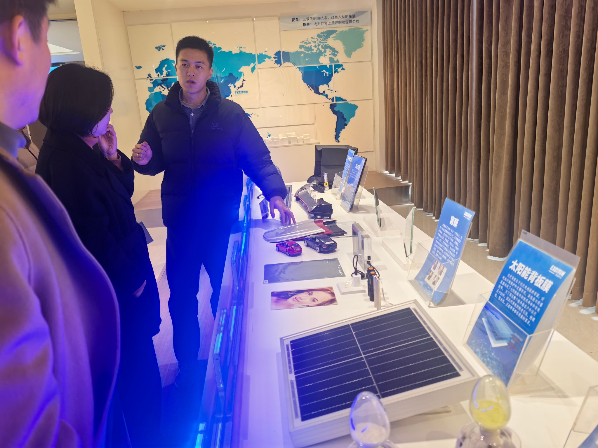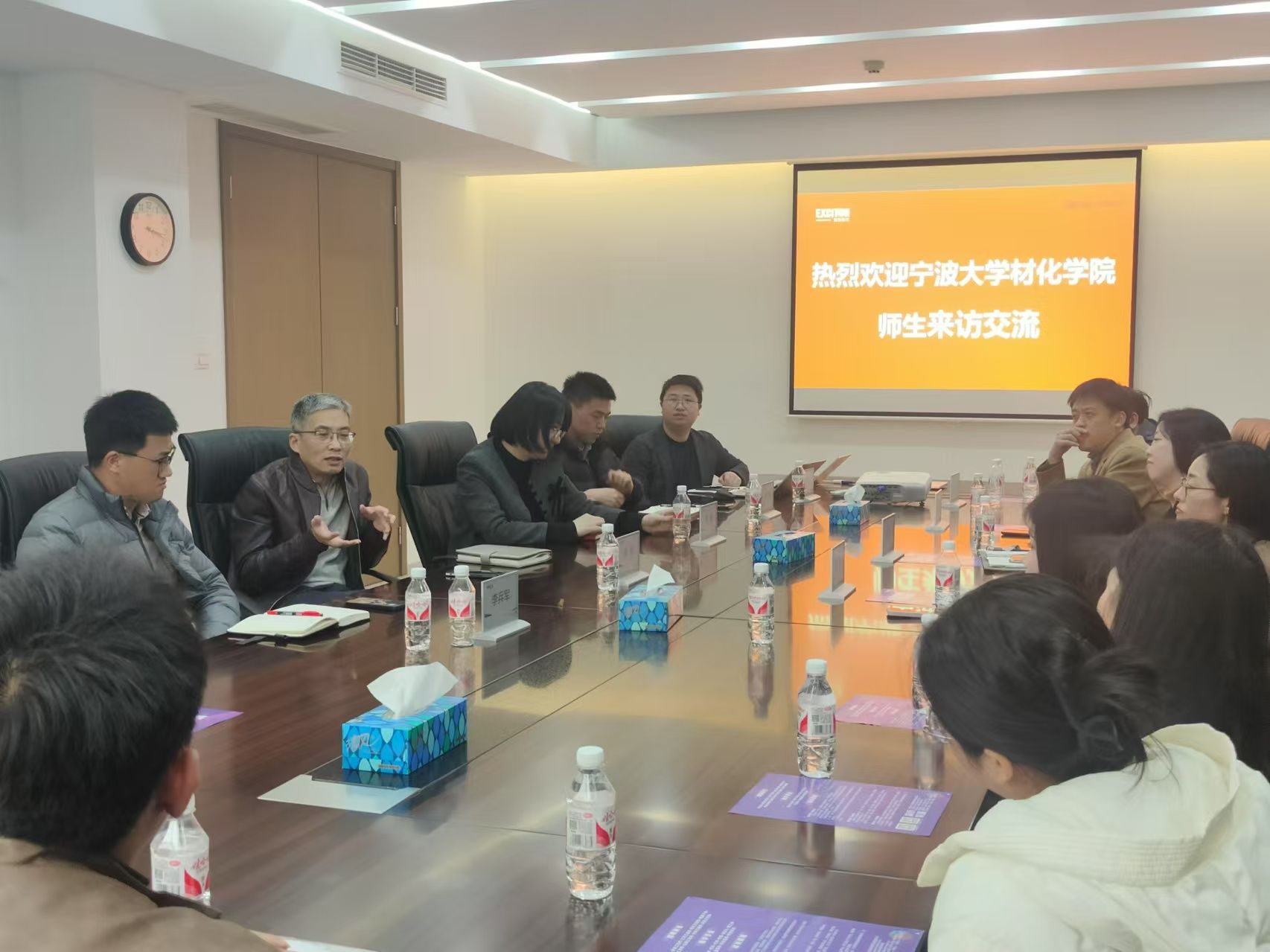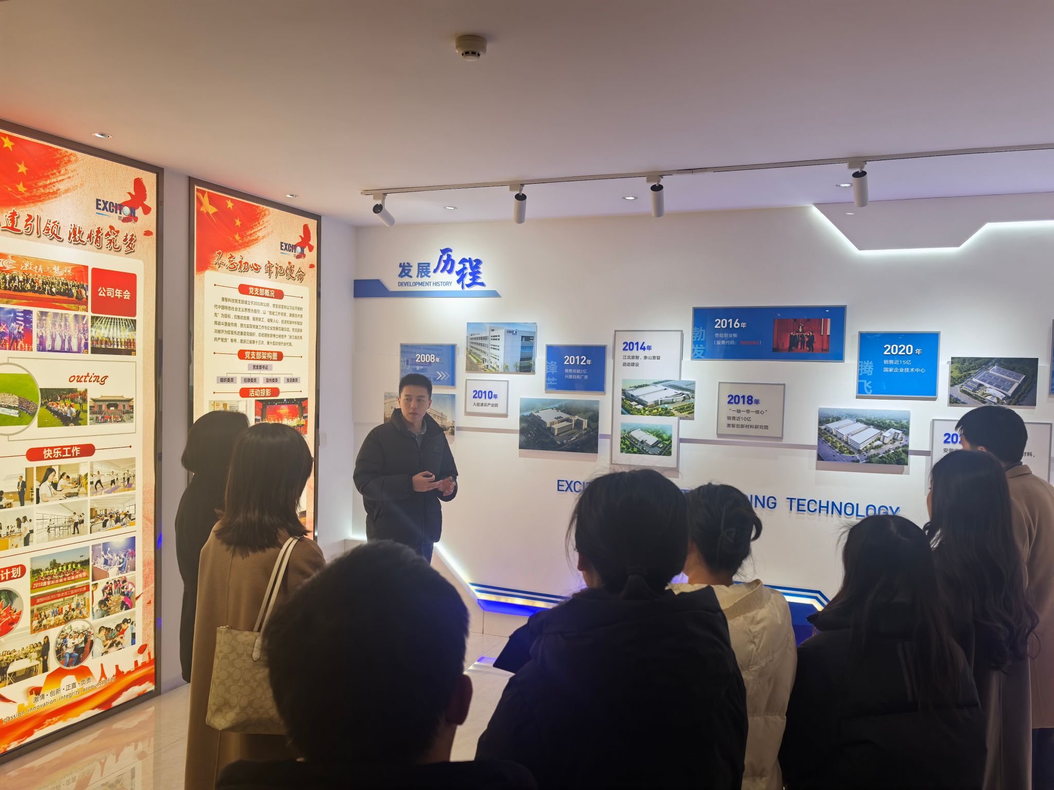 在公司负责人带领下,欲漫涩 一行参观了公司展厅,叶志鹏校友详细介绍了公司的发展历程、产品种类、研发流程等情况。随后,校企双方就产学研合作、党建共建等内容和同学们关注的职业发展路径、公司人才培养体系、职业发展前景等问题进行了深入的座谈交流。