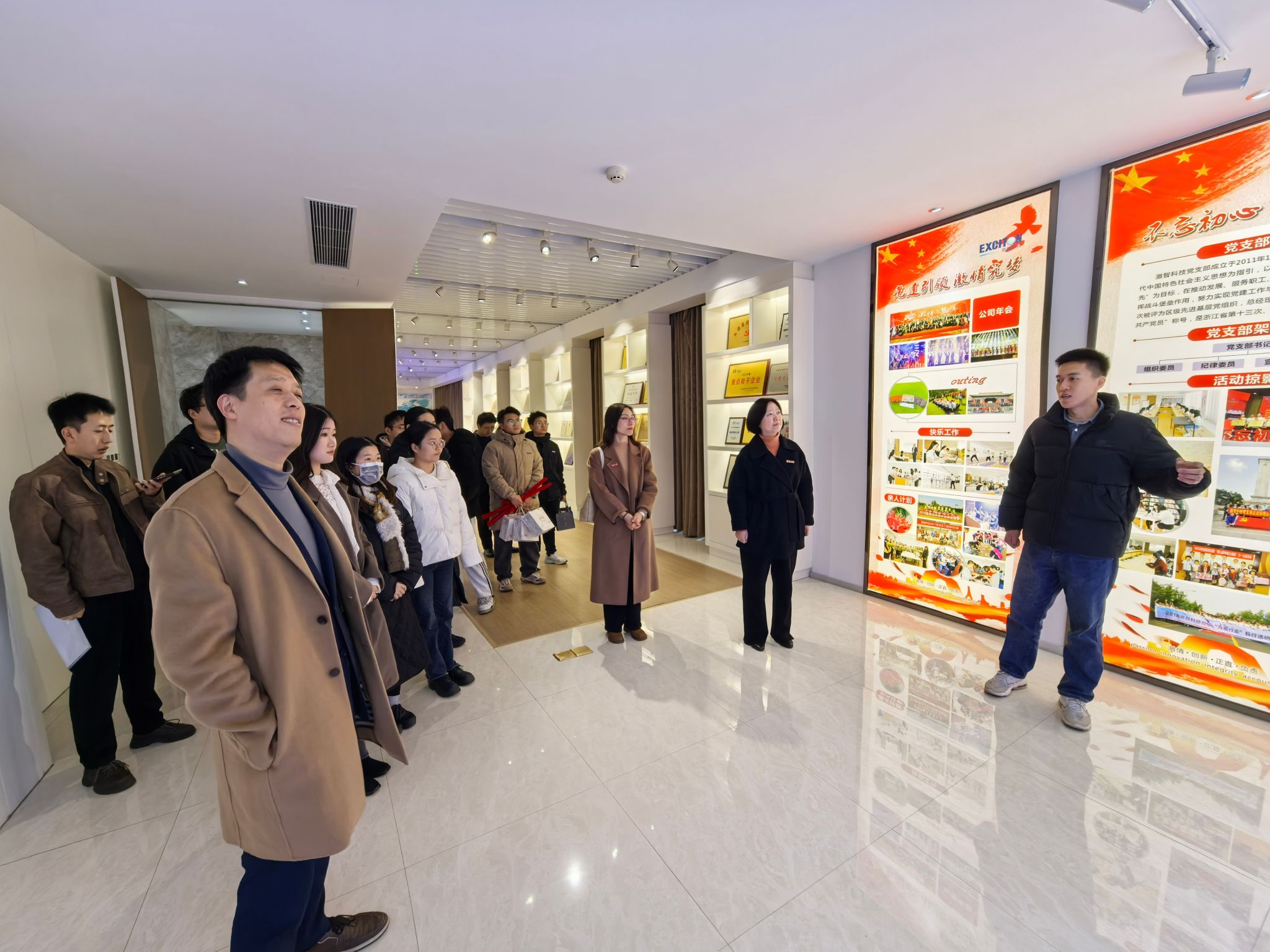 为深入了解就业市场,发掘企业用人需求,推动学生高质量充分就业,3月5日,欲漫涩 党委书记陶娟、副院长赵传壮、党委副书记尹慧带领学院17名学生代表参观走访了单项冠军企业宁波激智科技股份有限公司。公司副总经理李刚、俞瑛,人力资源经理赵仁艾等公司负责人热情接待了学院师生一行。学院2014届优秀校友李兵军和2018届优秀校友叶志鹏参加座谈。