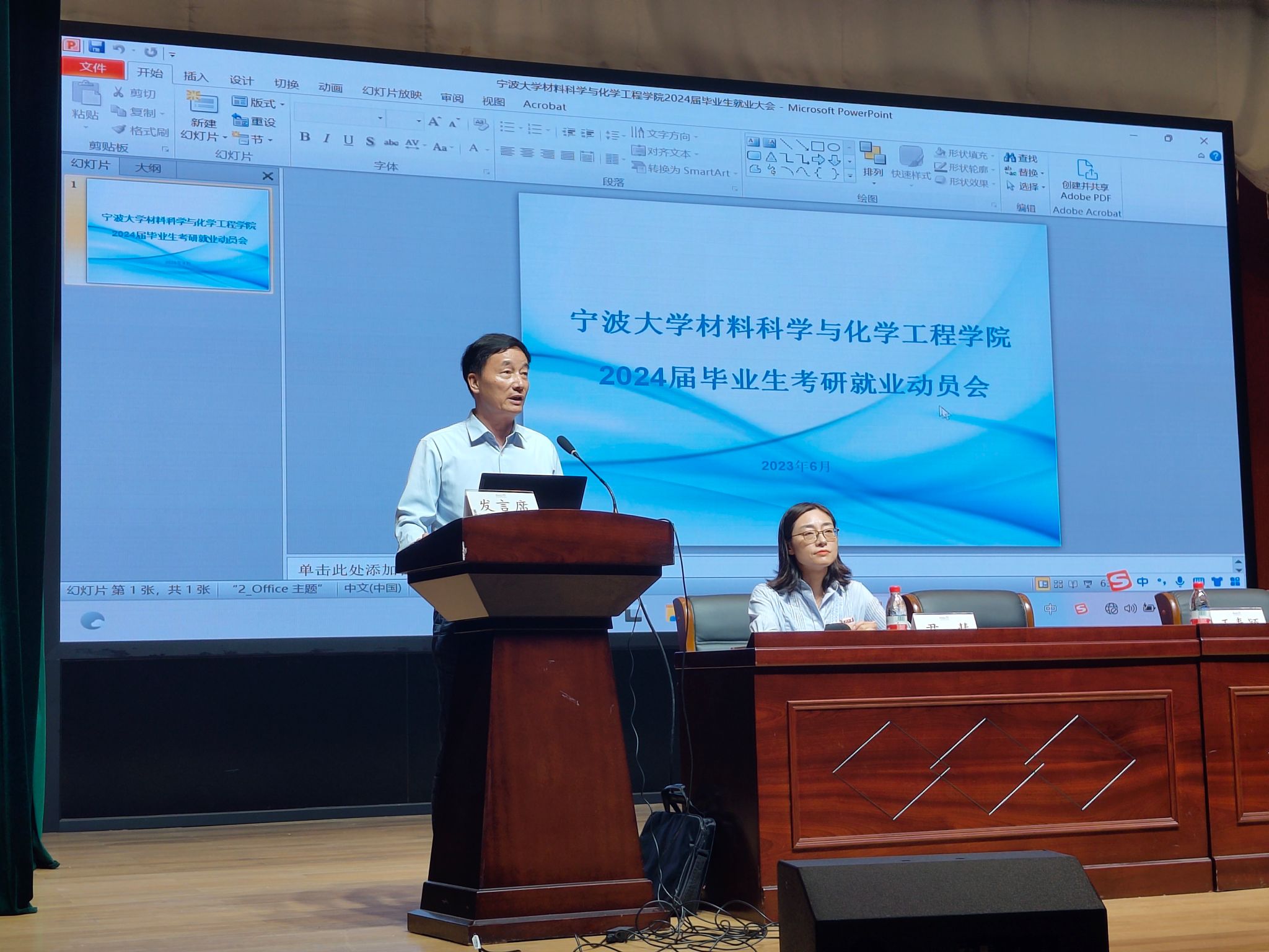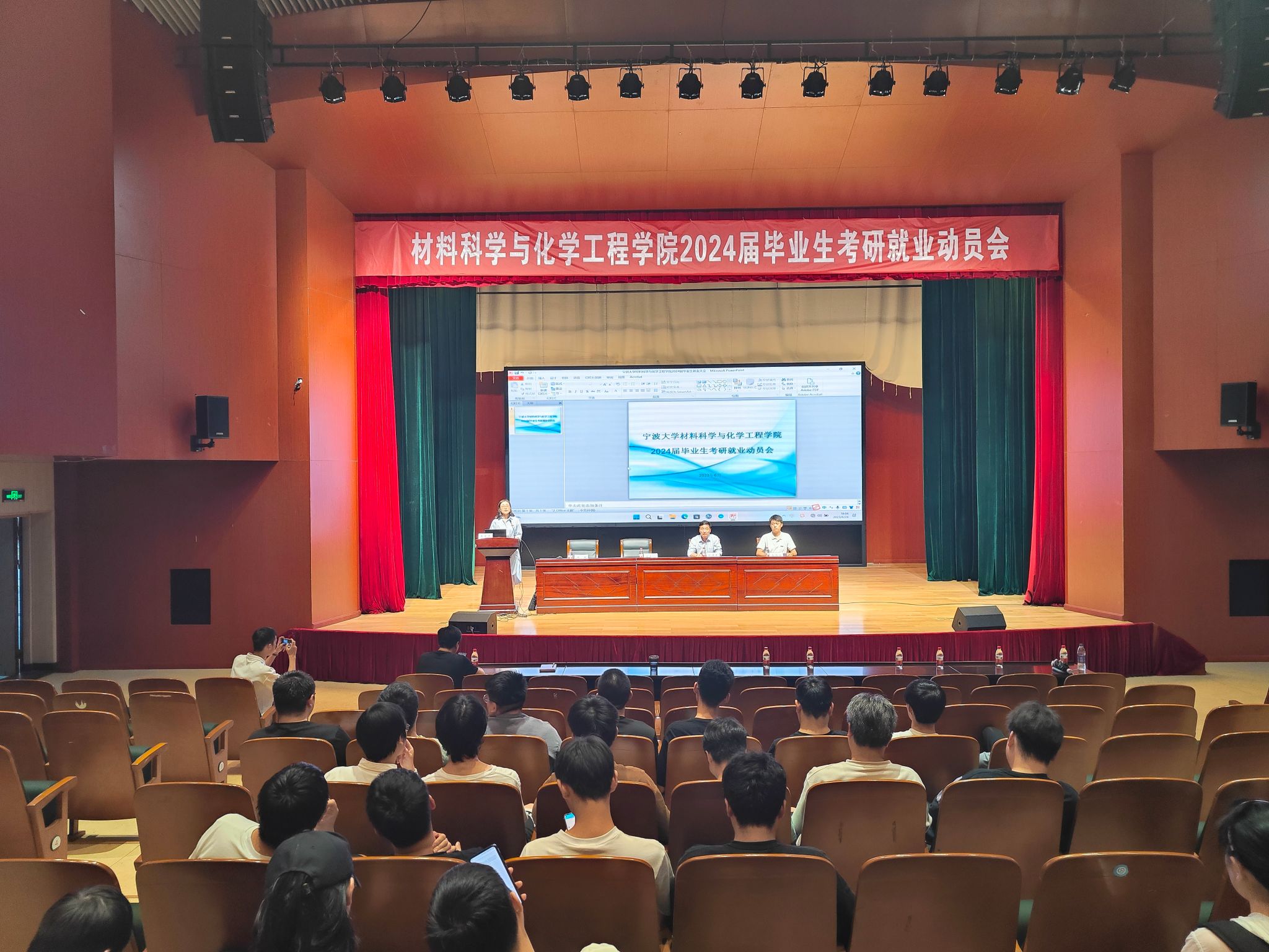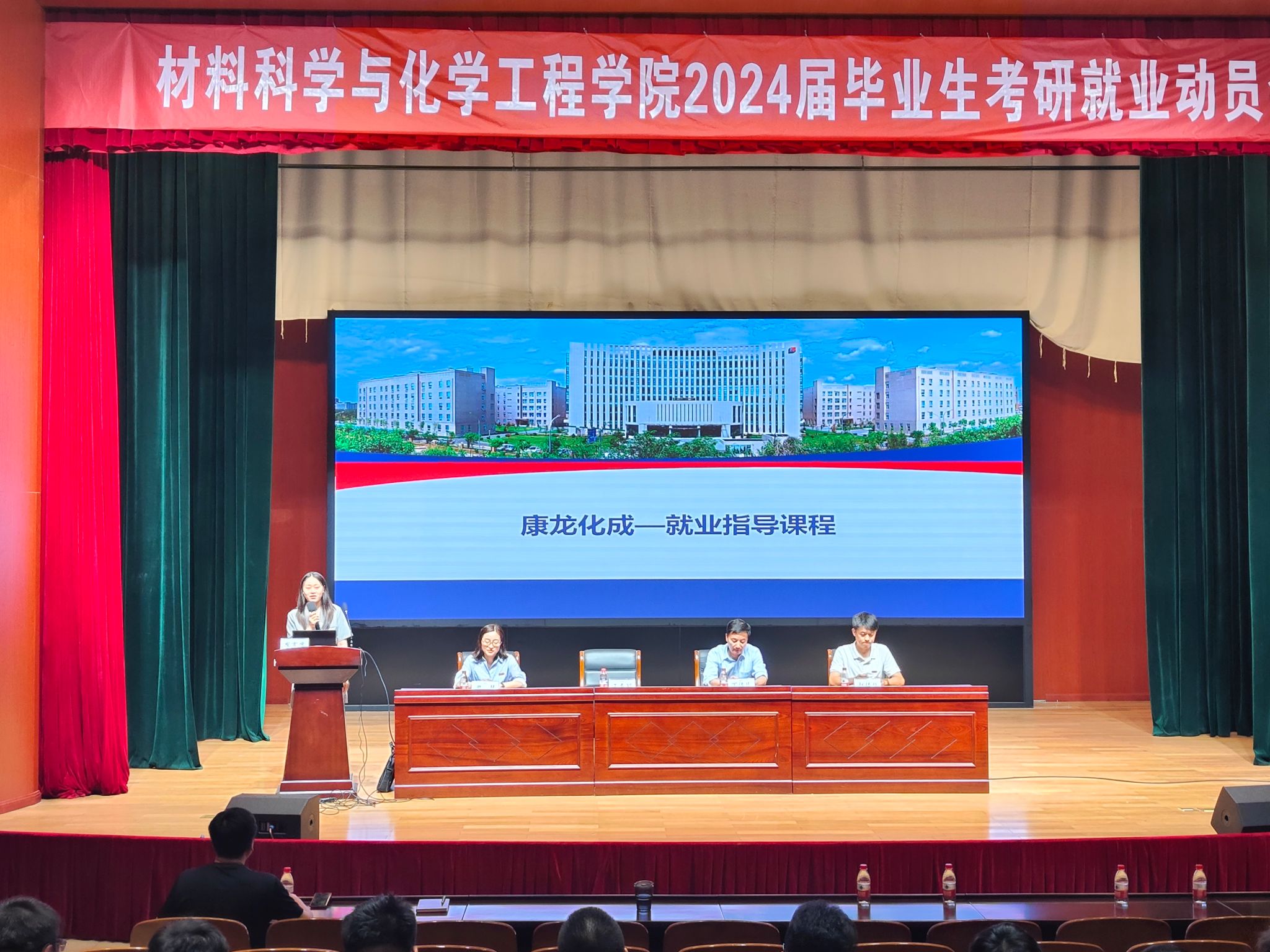 2024届毕业生考研就业动员会在忻元甫报告厅举办,学院院长丁传凡、副院长赵传壮、党委副书记尹慧、优秀校友企业康龙化成(宁波)新药技术有限公司人力资源总监王春颖出席会议。学院负责就业工作辅导员和2024届全体毕业生参加了此次动员会。会议由党委副书记尹慧主持。