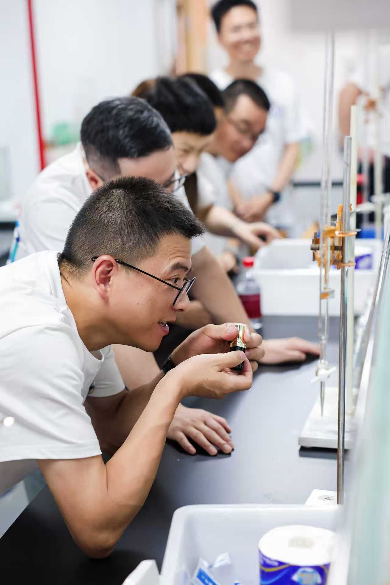 最后,学院安排校友们重回实验室,亲自动手做实验,为自己制作润唇膏。一支支晶莹剔透的润唇膏不仅让校友们重温了实验室的点点滴滴,也滋润了校友们对母校的脉脉温情。