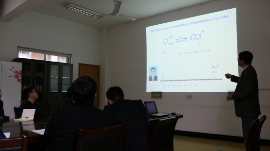 学术报告——有机磷化合物与炔烃间的新反应”学术报告。段教授就邻炔基有机磷化合物,系统开展了不同配位数的亲核型、亲电型有机磷中心与炔基之间环加成反应。这些研究促进了人们对C-P键切断反应的认识和利用,为简单、高效合成苯并磷杂环戊二烯类化合物提供了新路线。磷杂化戊二烯类共轭化合物在有机光电材料领域发挥了重要作用,因此对该类化合物,特别是苯并磷杂环戊二烯的合成方法的研究引起了人们极大的兴趣。欲漫涩