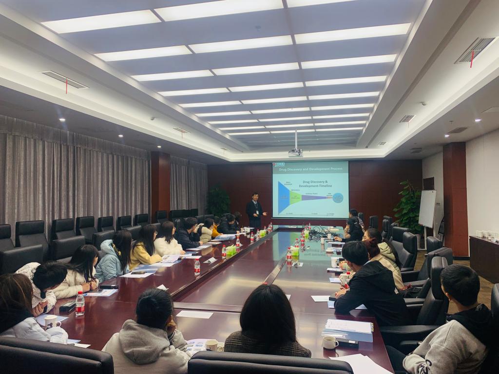 首先,付建民就康龙化成公司企业运营及欲漫涩做了全面介绍并进行了交流,现场解答学生提出的问题。现场气氛十分活跃。随后,学生们在王有龙及相关实验室负责人带领下先后参观了公司有机合成实验室,分析实验室,DELT实验室,并了解了GMP生产的过程,通过现场的参观,感受现代化制药工作的生产工艺方法。