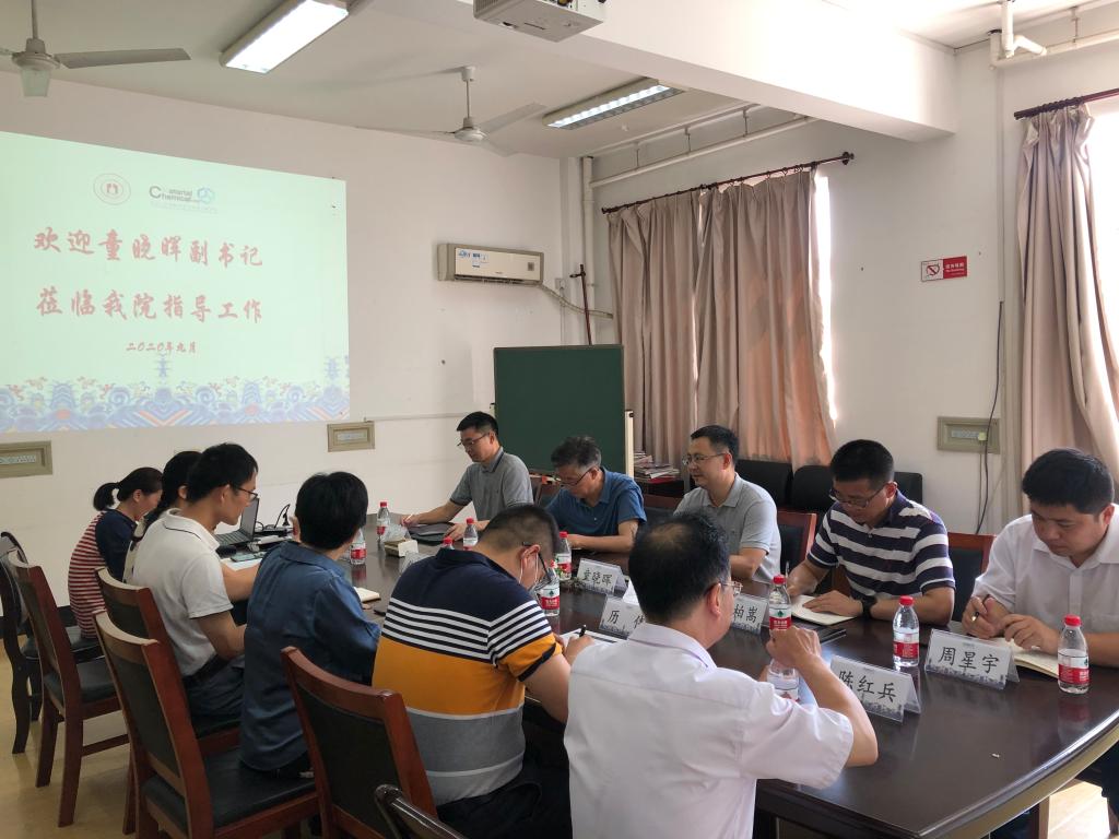 负责人向童晓晖全面汇报了学院在人才引进、科研工作、学科建设、平台建设、学生培养、党建工作、搬迁等总体情况,并介绍了学院的工作重点和未来规划。童晓晖对学院领导班子和教师的工作给与了充分肯定,他希望材化学领导班子要凝聚全院师生力量,加强战略引领、聚焦重点内容、提升治理能力,做好制度建设、信息化建设、实验室安全工作和搬迁工作,推进学院各项事业的发展。
