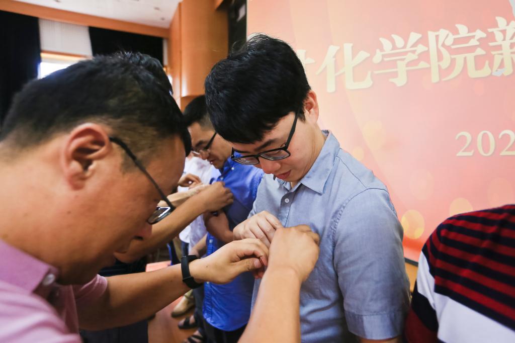学院党委书记陈玉涓首先向大家介绍了学院任教30年老教师,随后学院领导、各基层组织负责人等作为代表向老教师们送上了美丽的鲜花,并向老教师们表达了深深的祝福和感谢。随后陈玉涓介绍了近一年来的新入职教师,学院院领导和老教师为新教师佩戴校徽,新教师代表发言表示一定要继续传承发扬老教师的优良品德,以“四有”好老师的标准严格要求自己,以身作则,立德树人。