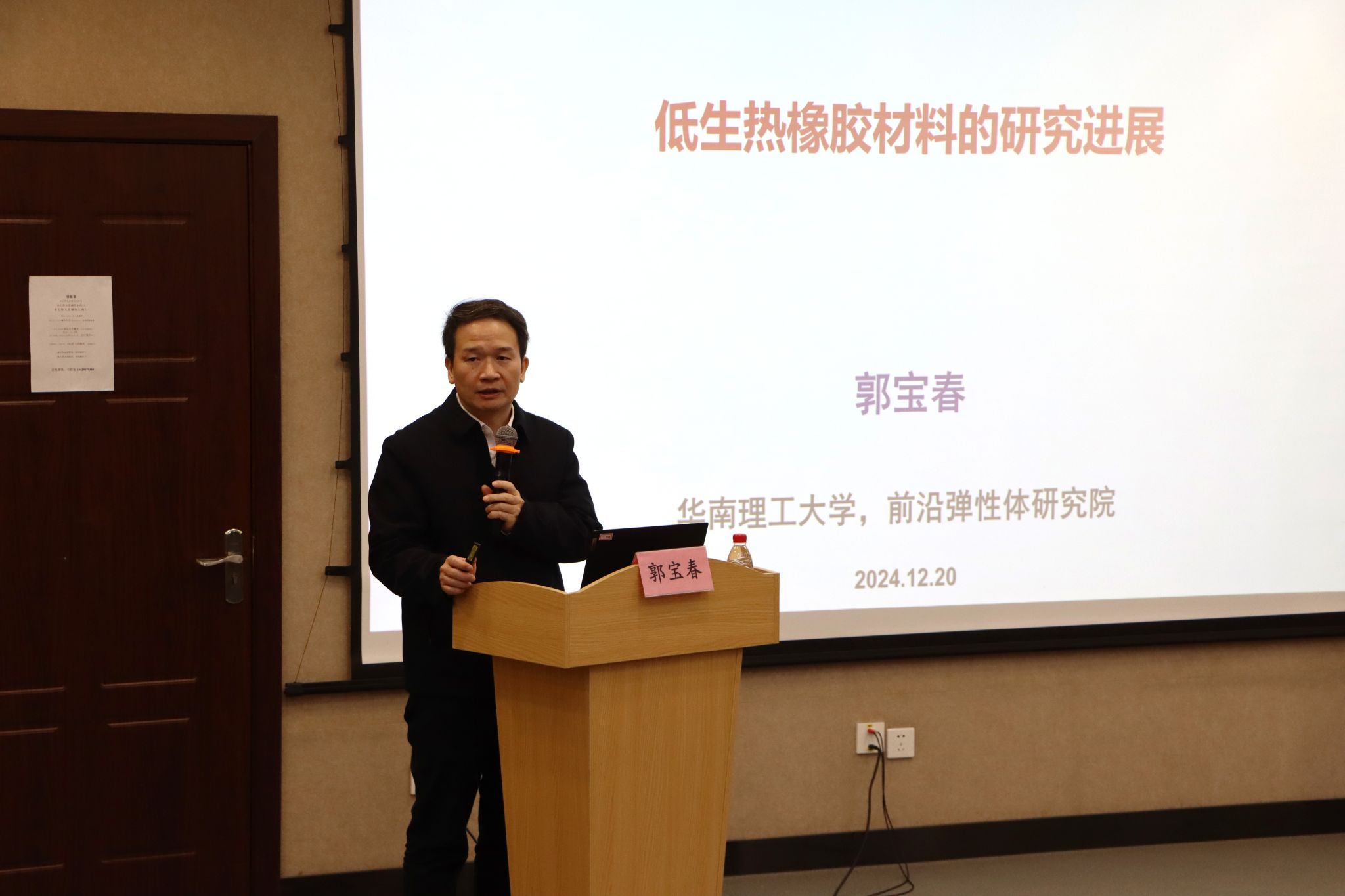 研究生创新论坛第187期”在北区杨永曼楼双创实验室(四)顺利举办。本次讲座主题为低生热橡胶材料的研究进展,华南理工大学材料学院院长郭保春担任主讲嘉宾,学院师生100余人参加。