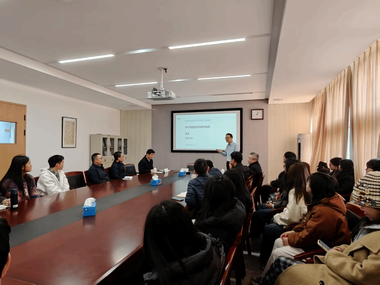 王浩教授在报告中讨论了各类中子测量技术及其在新材料、新能源和生物医学研究中的应用,并在报告后与学院师生进行了深入的交流。本次报告使广大师生对中子散射技术及其应用有了深入的了解,深受欲漫涩