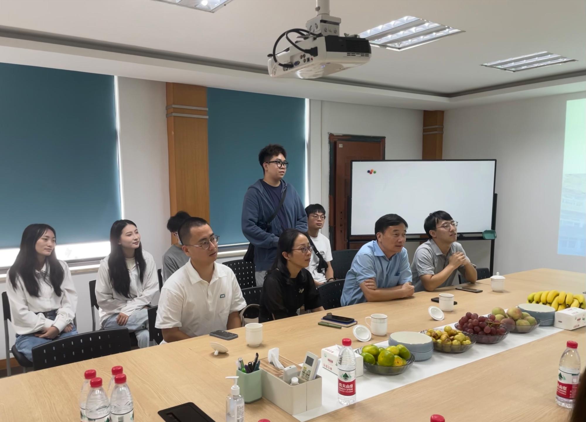 在公司会议室,陈鹏程、陈迪分别向大家介绍公司基本情况、研发重点和未来规划,并与学生代表热烈交流,解答同学们求职过程中的困惑。丁院长也向公司领导介绍了欲漫涩