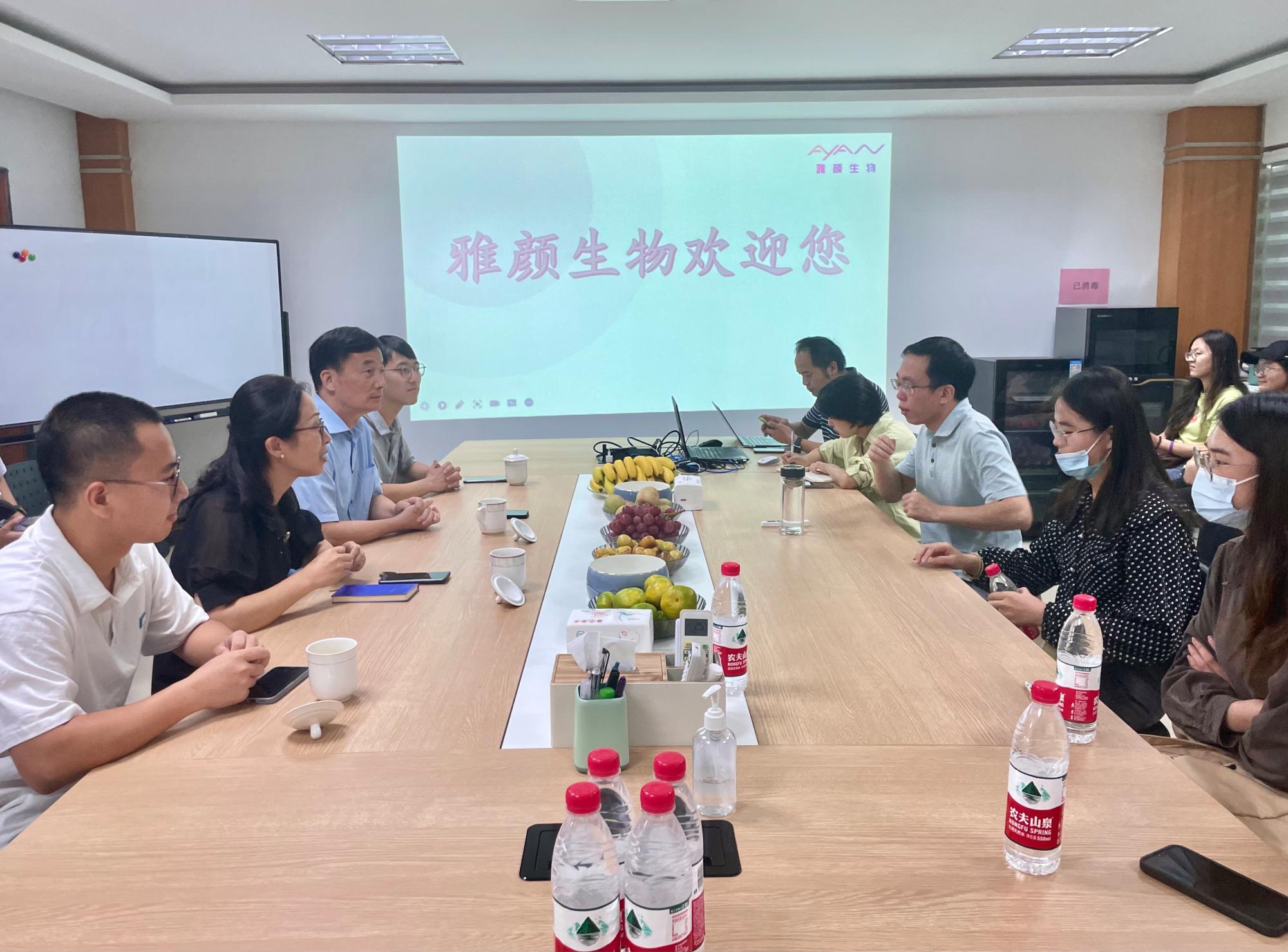 随后丁传凡一行参观了雅颜生物科技有限公司的研发测试基地和生产车间,陈总经理陪同讲解,对公司研发、生产的流程进行了充分的了解。