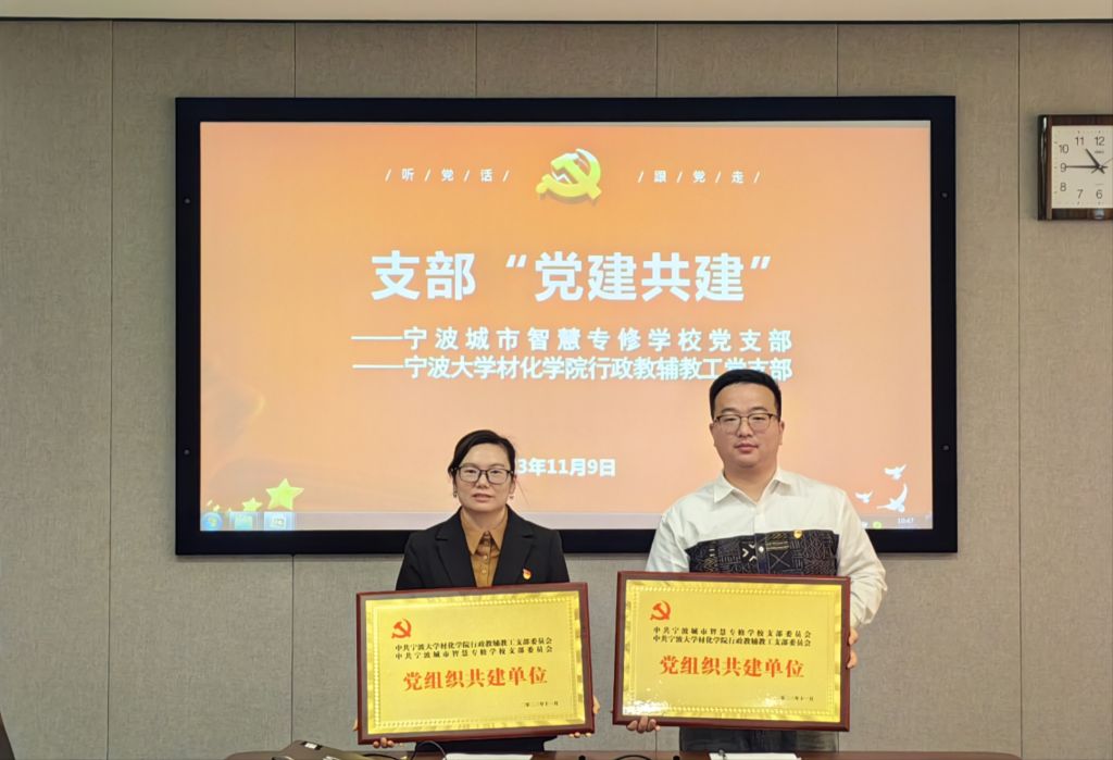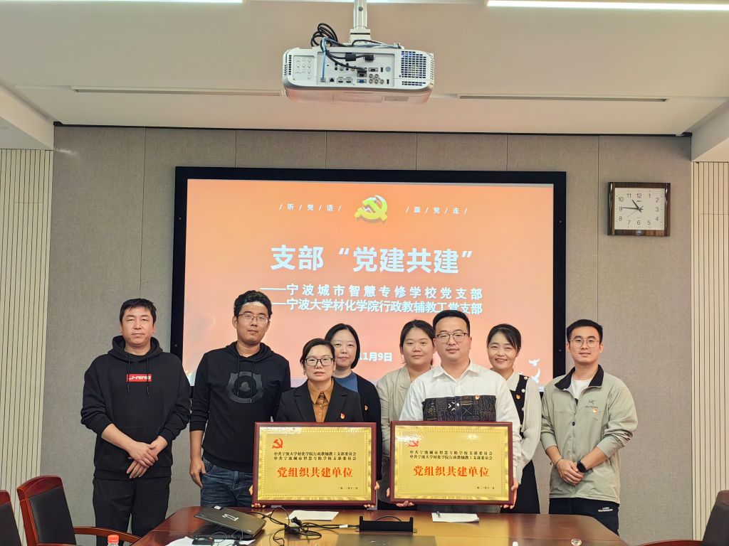 行政教辅教工党支部与宁波城市智慧专修学校党支部开展支部“党建共建”活动。学院党委书记陶娟、行政教辅教工党支部书记邓方、继续教育办毕文超,学工办韩鸿儒,宁波城市智慧专修学校党支部书记陈超,宣传委员黄盛、组织委员余王芳、团学负责人金宇峰参加会议。会议由毕文超主持。