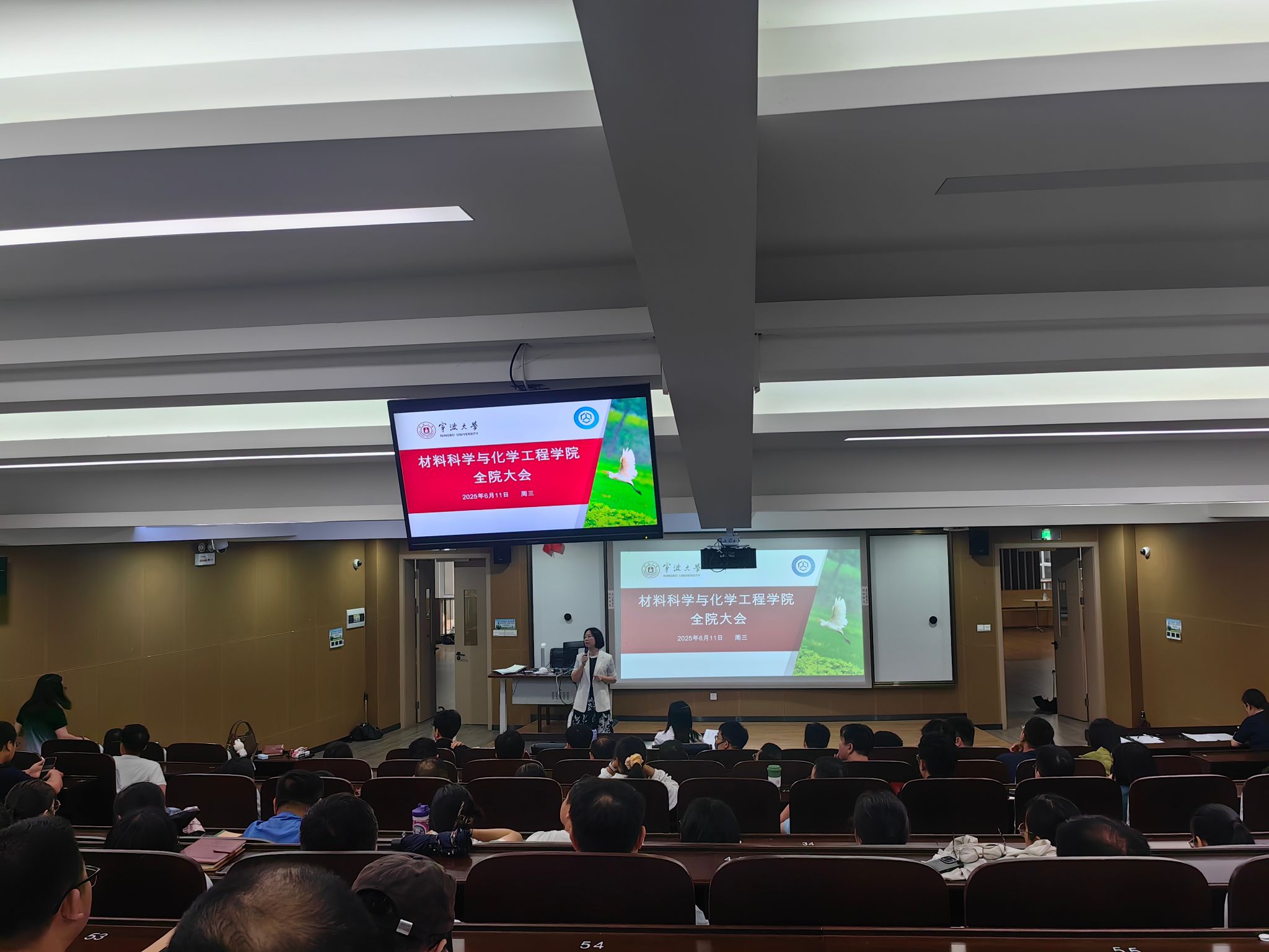 在北区2号教学楼107教室召开全体教职工大会,会议由党委书记陶娟主持。
