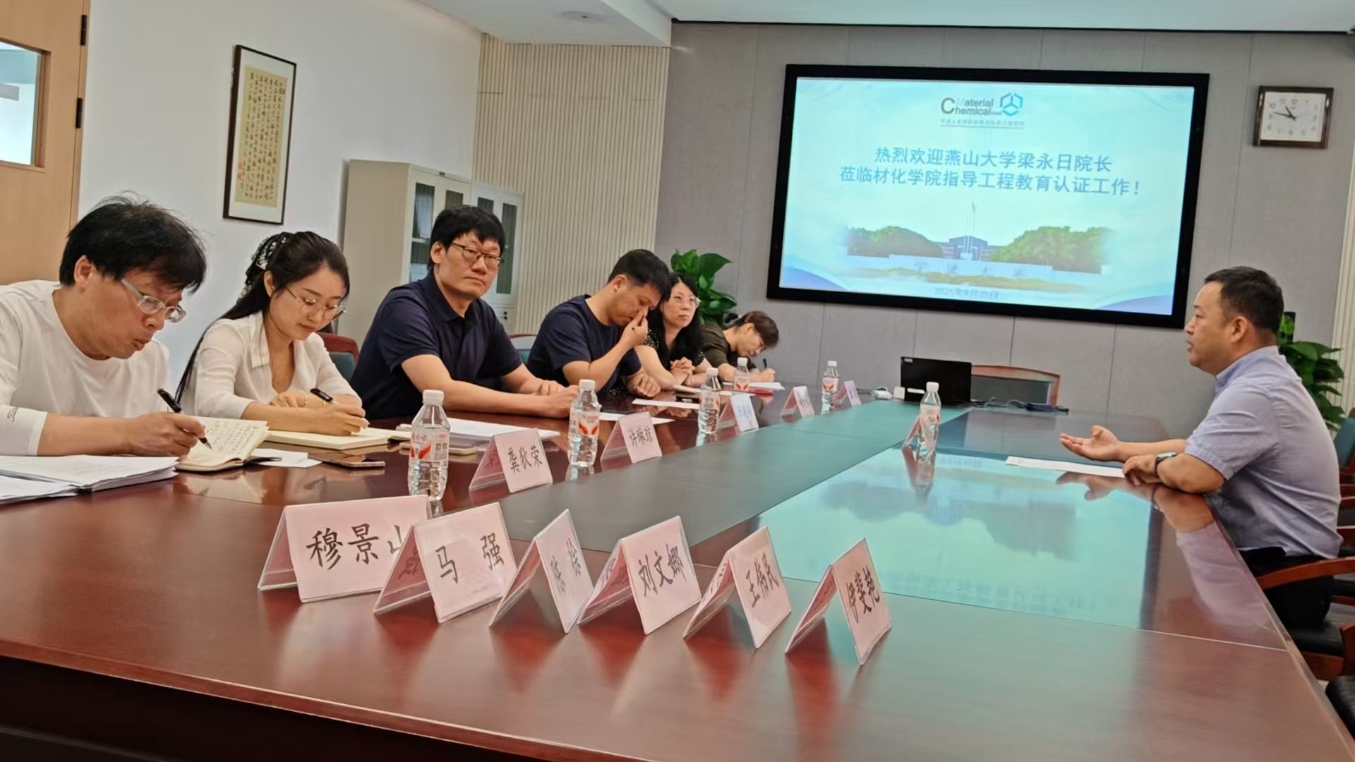 2025年9月25日中午,燕山大学材料科学与工程学院梁永日教授来到我院进行工程教育认证工作交流,李砚硕院长及我院认证工作相关老师参加了座谈交流,会议由赵传壮老师主持。