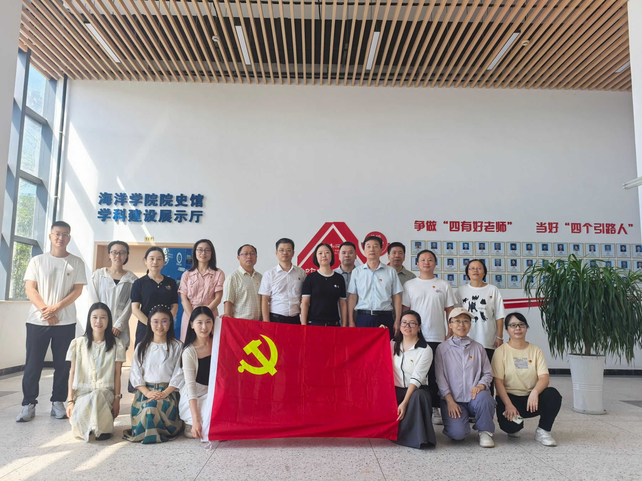 与省档案馆、教育厅共建,335件珍贵档案复制品中,既有中央档案馆首次公开的文献史料,也包含浙江红色历史珍品,党员们通过“档案里的初心故事”回溯革命历程。随后参观的全国样板党支部党建阵地,以规范化建设成果与特色工作法展示,为支部标准化建设提供实践参照,“五培五联五促”工作模式为我们提供了很好的借鉴。随后还参观了首批全国党建标杆院系—海洋学院的院史馆、学科建设展示厅,通过参观学习,能够更好的推动省级样板支部的创建。