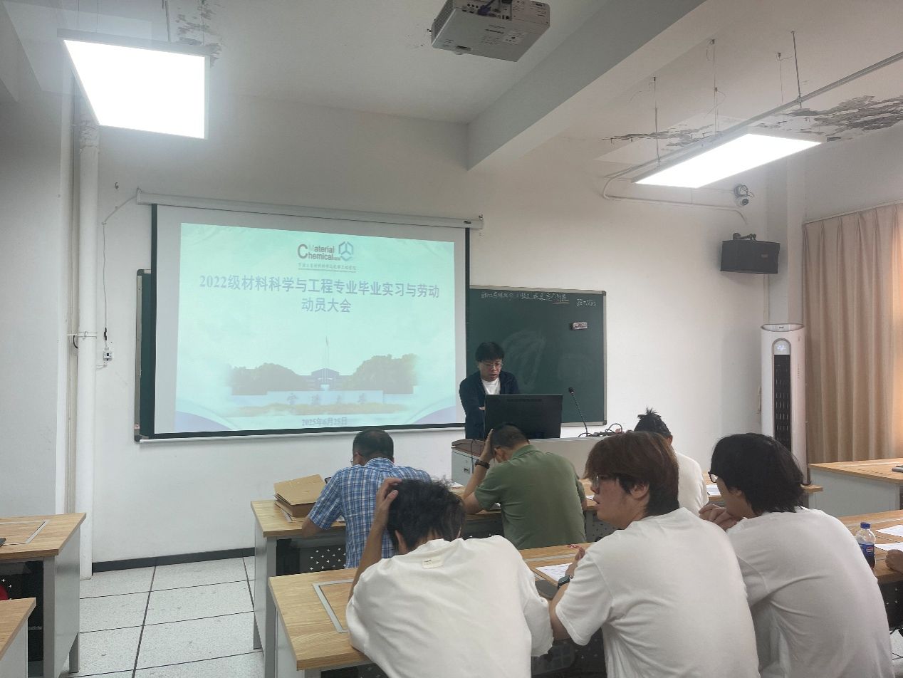 2025年5月25日,材料科学与工程学院在逸夫材化楼北楼218室召开了2022级材料专业实习动员大会。本次大会旨在明确实习任务、强调实习纪律,为即将开展的毕业实习做好充分准备。材料专业系主任、实习指导老师及全体实习同学参加会议。