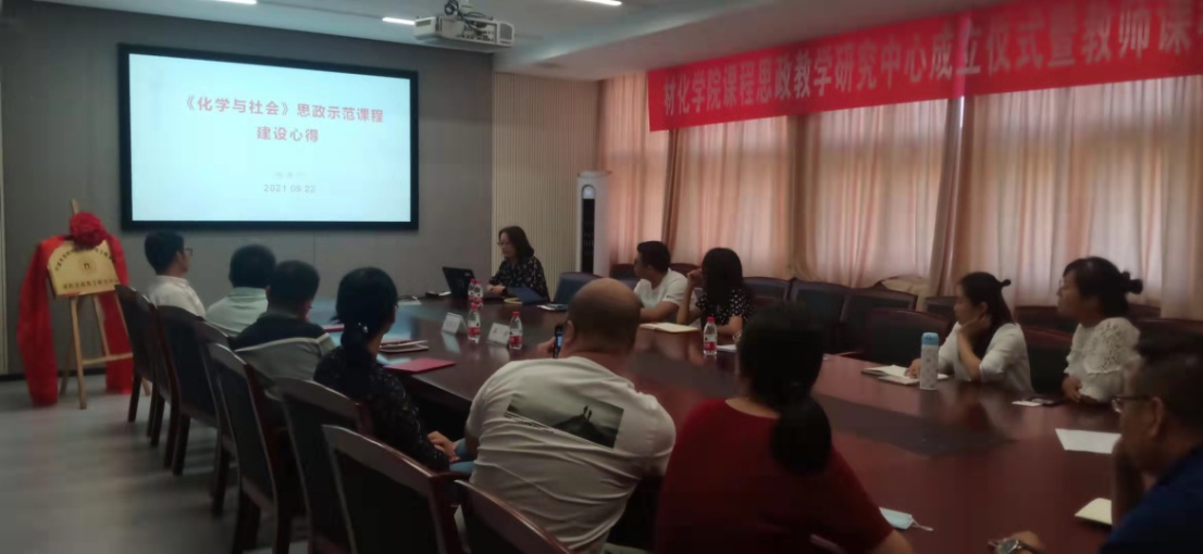 课程思政教学研究中心的通知》,并对课程思政教学中心的成立给与充分肯定。徐进和罗云杰一起为教研中心成立揭牌。干宁、谢洪珍和张利师分别被聘为欲漫涩