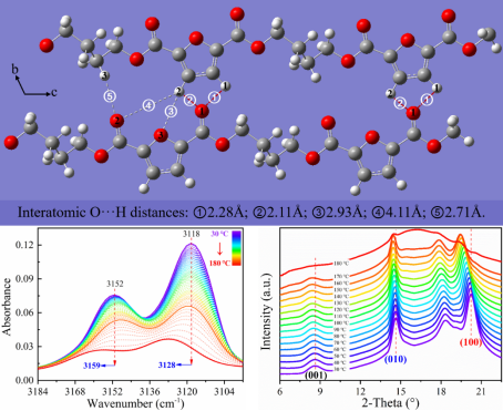 近日,我院高分子材料加工与结构调控团队在高分子科学权威期刊Macromolecules上发表题为“Intermolecular ═C–H···O═C Hydrogen Bonding and Conformational Preference in Crystalline Poly(butylene 2,5-furandicarboxylate)”的研究论文,硕士生叶柏荣和邵琪为共同第一作者,李奕国教授为通讯作者,团队负责人王宗宝教授为共同通讯作者,欲漫涩