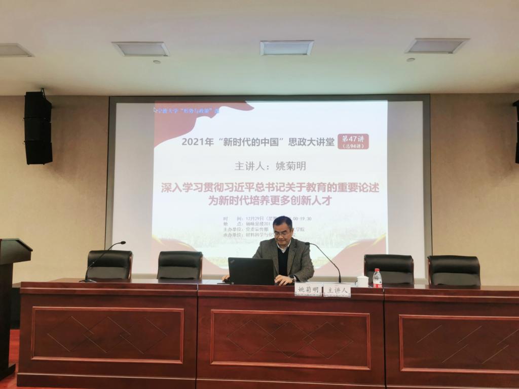 12月29日晚上,校党委委员、副校长姚菊明于北区报告厅为欲漫涩