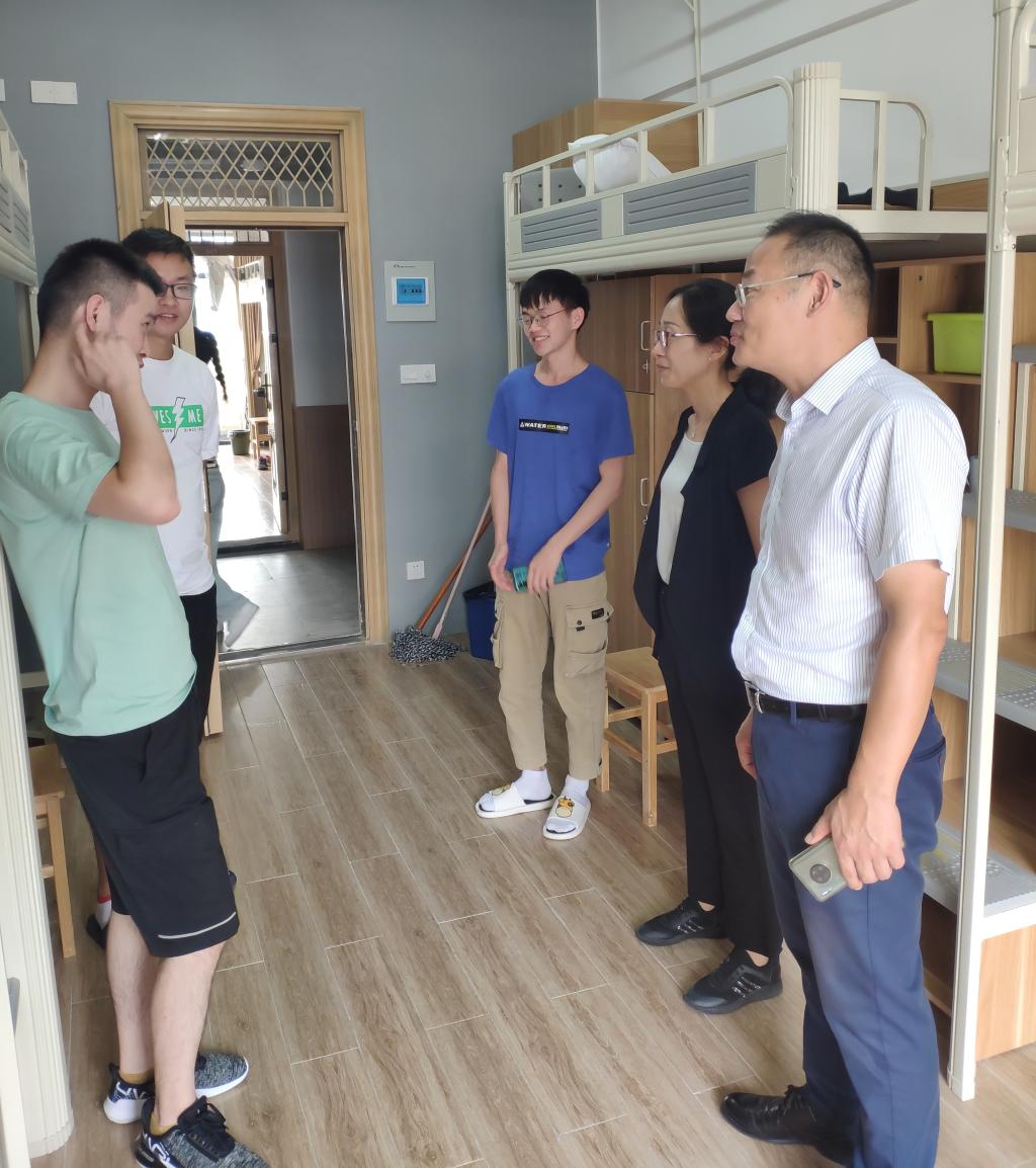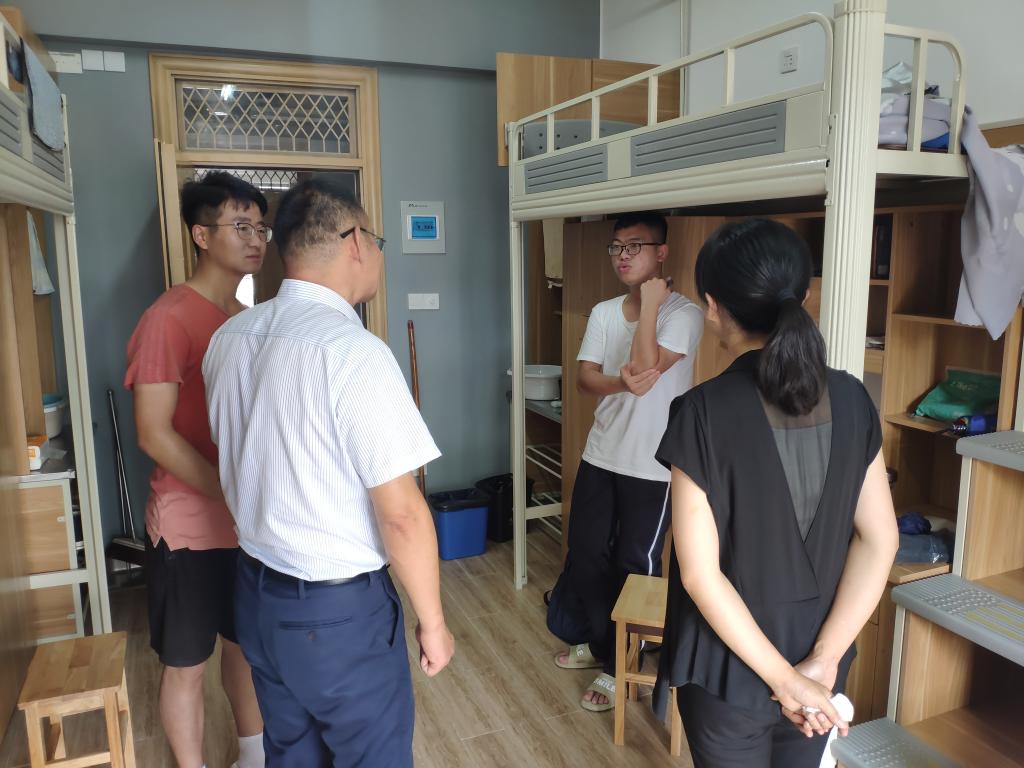 2021级新生入学适应情况,让新生充分感受到学院的关怀和温暖,9月9日中午,院党委书记罗云杰,院党委副书记朱燕带领学工办主任韩鸿儒、辅导员们一起走访了研究生新生宿舍。