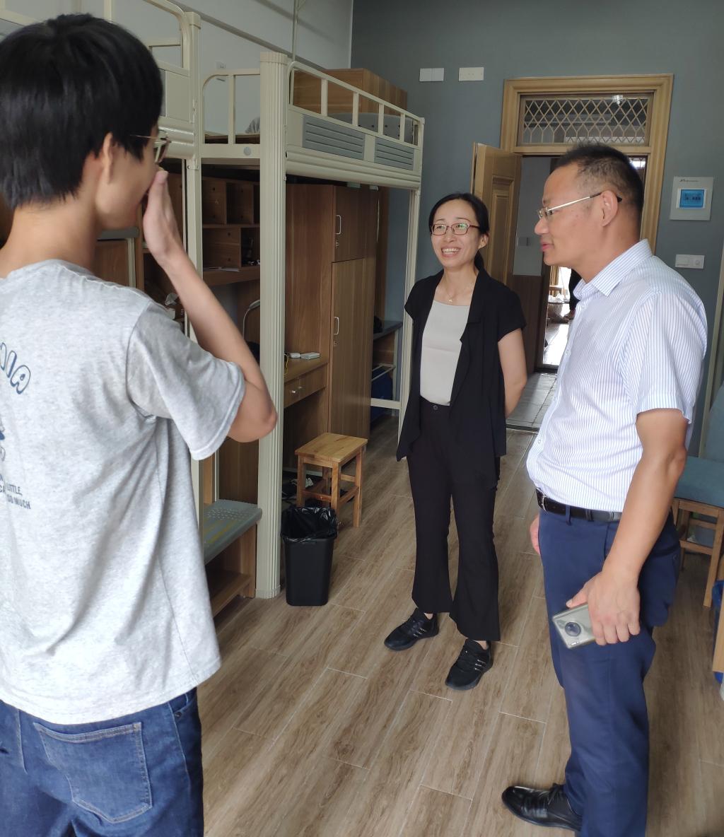 “同学们吃过饭了吗?从哪里来?生活是否还适应?为什么选这个专业?导师选好了吗?”每到一个宿舍,罗云杰书记都悉心询问了同学们的学习、生活情况,还不断亲切地与同学们交谈,鼓励大家好好学习,夯实专业基础,做好学业规划。并提醒同学们尽快熟悉环境,做好开学准备,希望大家以良好的精神面貌迎接新学期。在走访过程中,朱燕副书记强调,要注重寝室文化建设,并嘱咐寝室要做好卫生值日表,共同维护好寝室这个小家庭,尽快融入欲漫涩