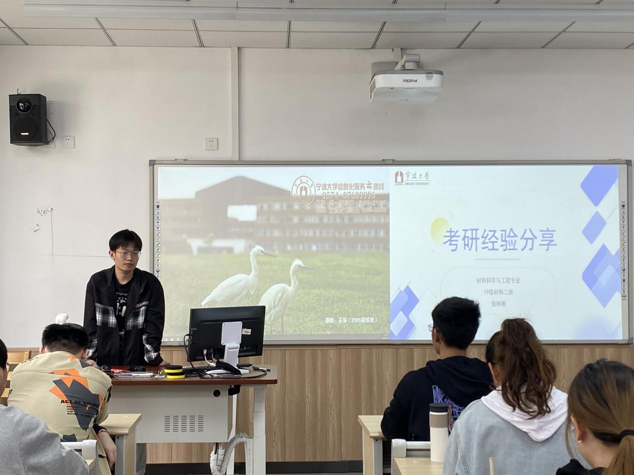 的魏增武学长从院校选择、初试和复试的准备几方面进行了分享,对思想政治理论、数学二、英语二、材料科学基础等不同类型的课程,逐一细致地讲解了自己的学习方法,并分享了学习资料。同时,魏增武学长也劝诫同学们切勿用时长自我感动,选择合适自己的学习环境,注重提高学习效率。