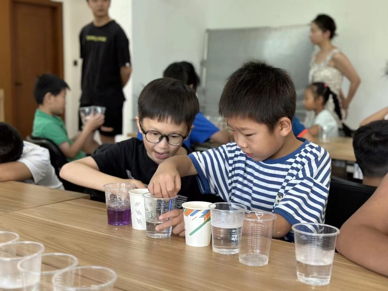 趣味的化学实验让孩子们在已知的生活世界和未知的科学世界之间建立一座知识桥梁,感受化学的魅力和科学世界的奥秘。小朋友们在完成趣味实验的同时锻炼了科学思维和动手操作能力,同时也提升了团队合作意识。