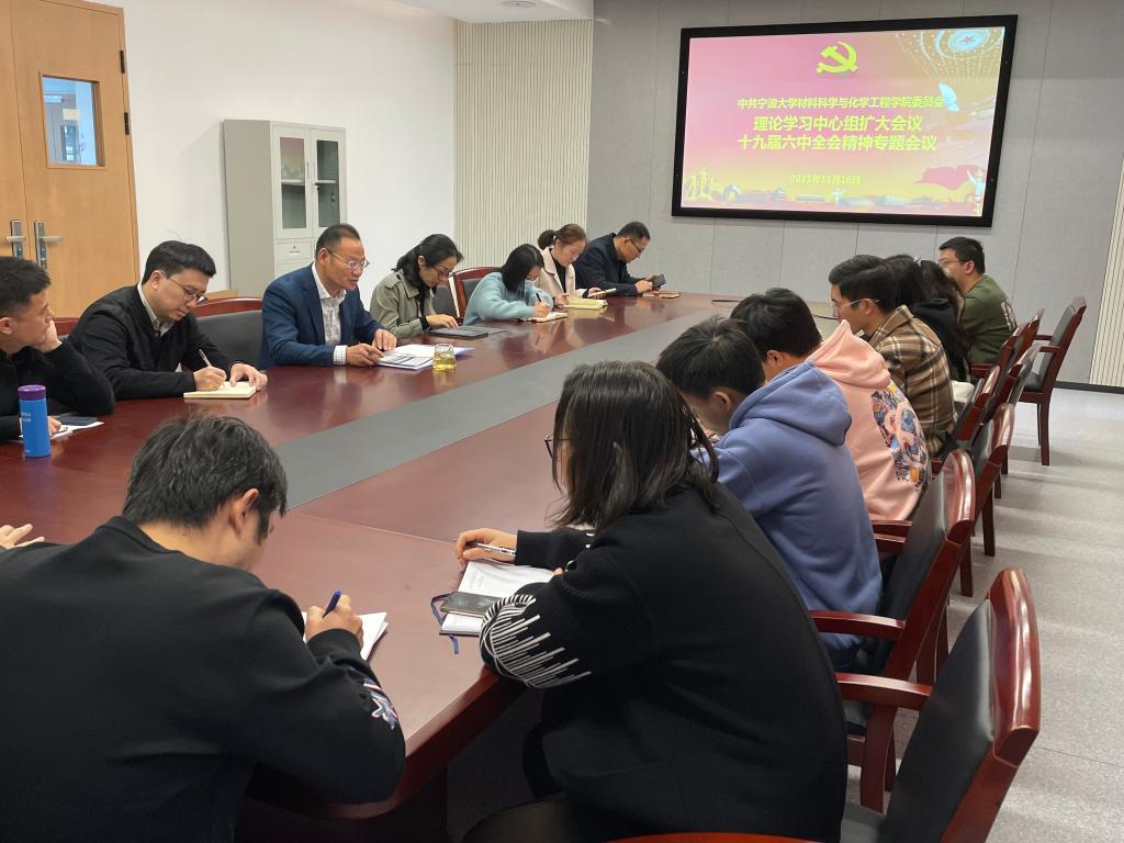 在北区1号实验楼1227会议室召开理论学习中心组扩大会议,专题传达学习了党的十九届六中全会会议精神。学院党委委员及全体师生党支部书记参加了会议。