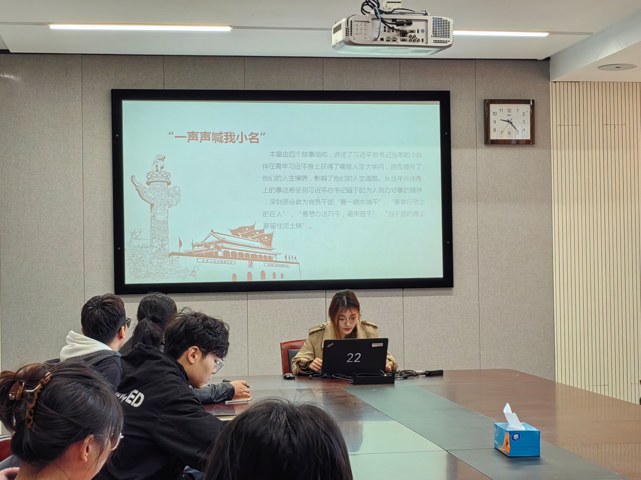 活动开始,支部委员周佳妮同志讲述了本次读书会的目的和要求。随后由支部的邹良辰、徐浩楠、蔡雪儿和陈佩婷四位同志按章节依次分享了自己的读书感悟。从他们的分享中,支部同学们不仅了解到了习近平总书记的知青岁月,也体悟到了基层工作的重要性。最后党支部其他党员分享了自己的读书心得,体悟为人民服务的宗旨。大家纷纷表示,通过阅读本书深受启发,要到基层中去、到实践中去、到人民中去,学以致用,为社会多作贡献。