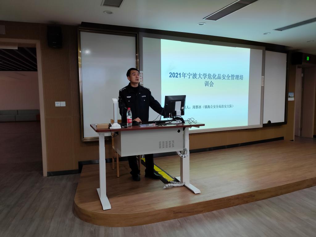 北区2号教学楼306室顺利举行。本次活动特别邀请了宁波市公安局镇海分局治安大队周黎冰警官和江北区消防救援大队刘慧明副大队长分别就危险化学品安全管理和消防安全做了精彩的讲座。本次讲座采用线下和线上直播相结合的方式,现场到会人数约150人,除了欲漫涩