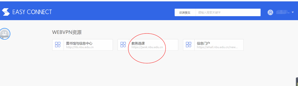 登录成功后显示webVPN网站导航页,点击教务选课,跳转至选课系统进行选课。