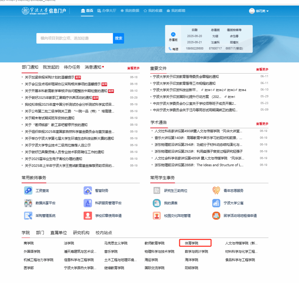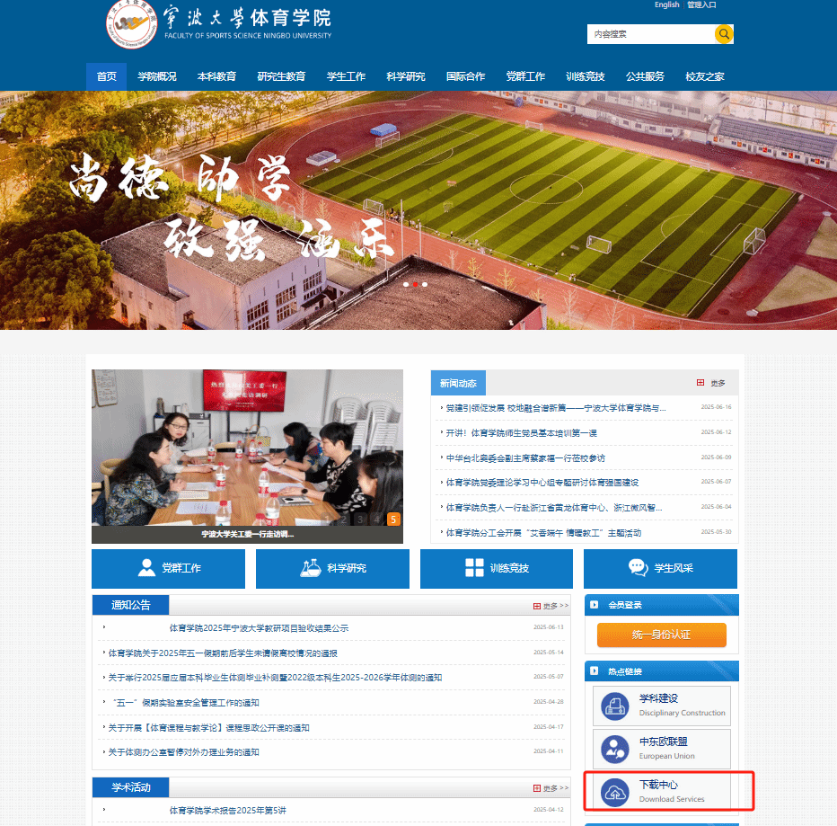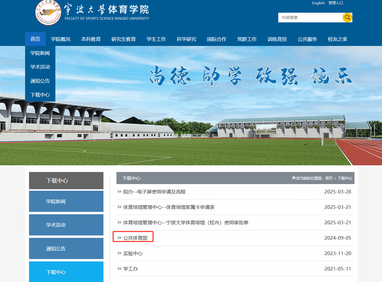 门户信息门户,点击下方“体育学院”